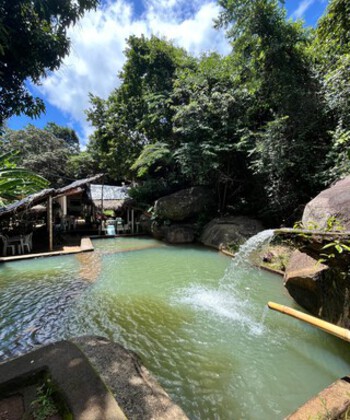 O espaço conta com piscinas naturais, formadas pelas águas que descem da serra, oferecendo banhos revigorantes e momentos de pura diversão. Além disso, a estrutura dispõe de restaurante aberto ao público, onde é possível saborear gastronomia regional em um ambiente acolhedor e relaxante.